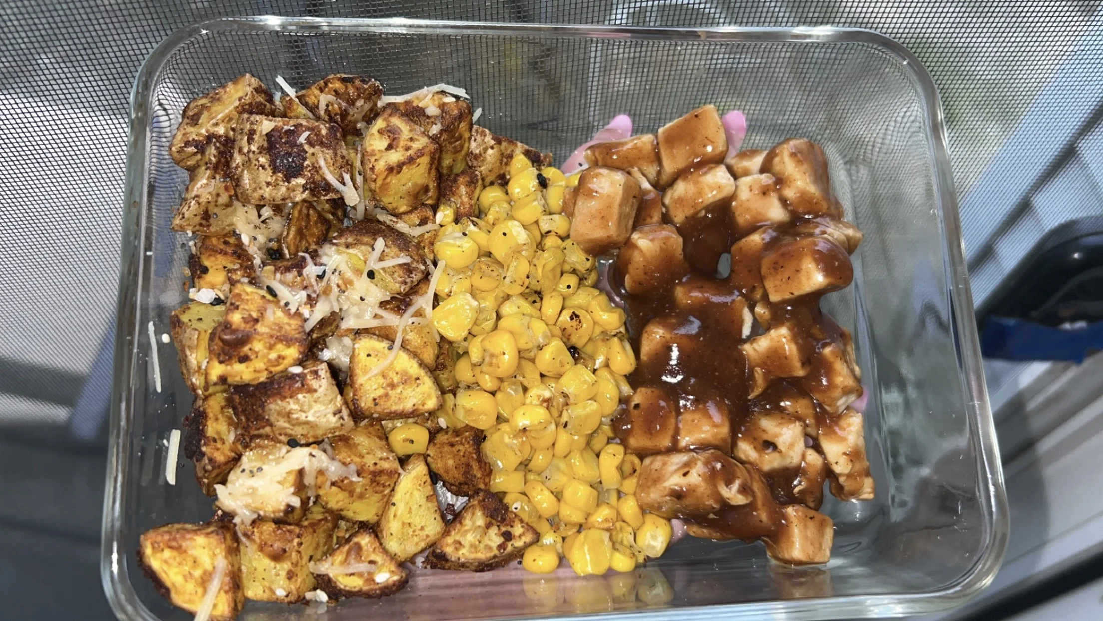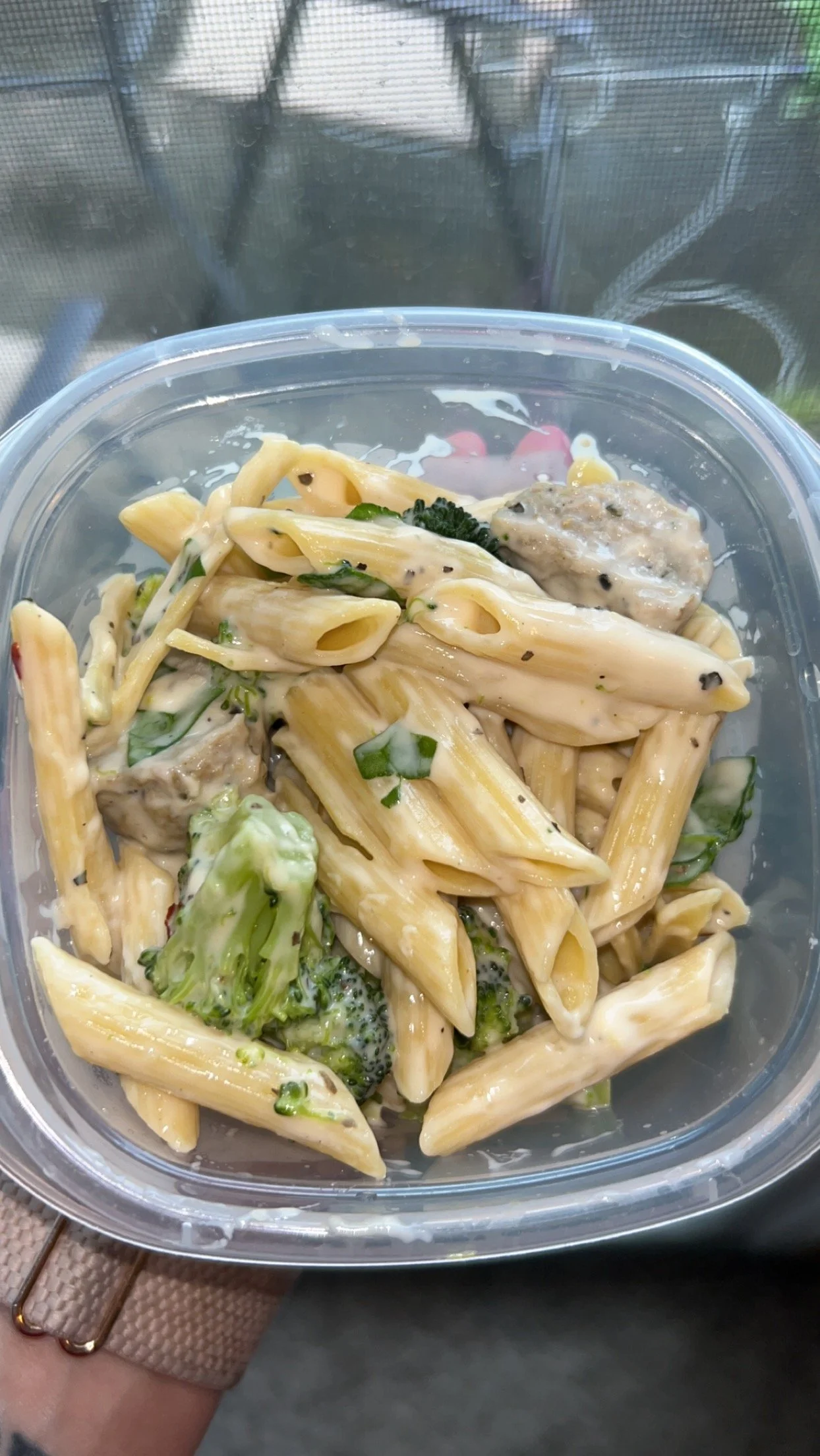 2 (1/2 serving) Trader Joe’s chicken meatballs, cut
